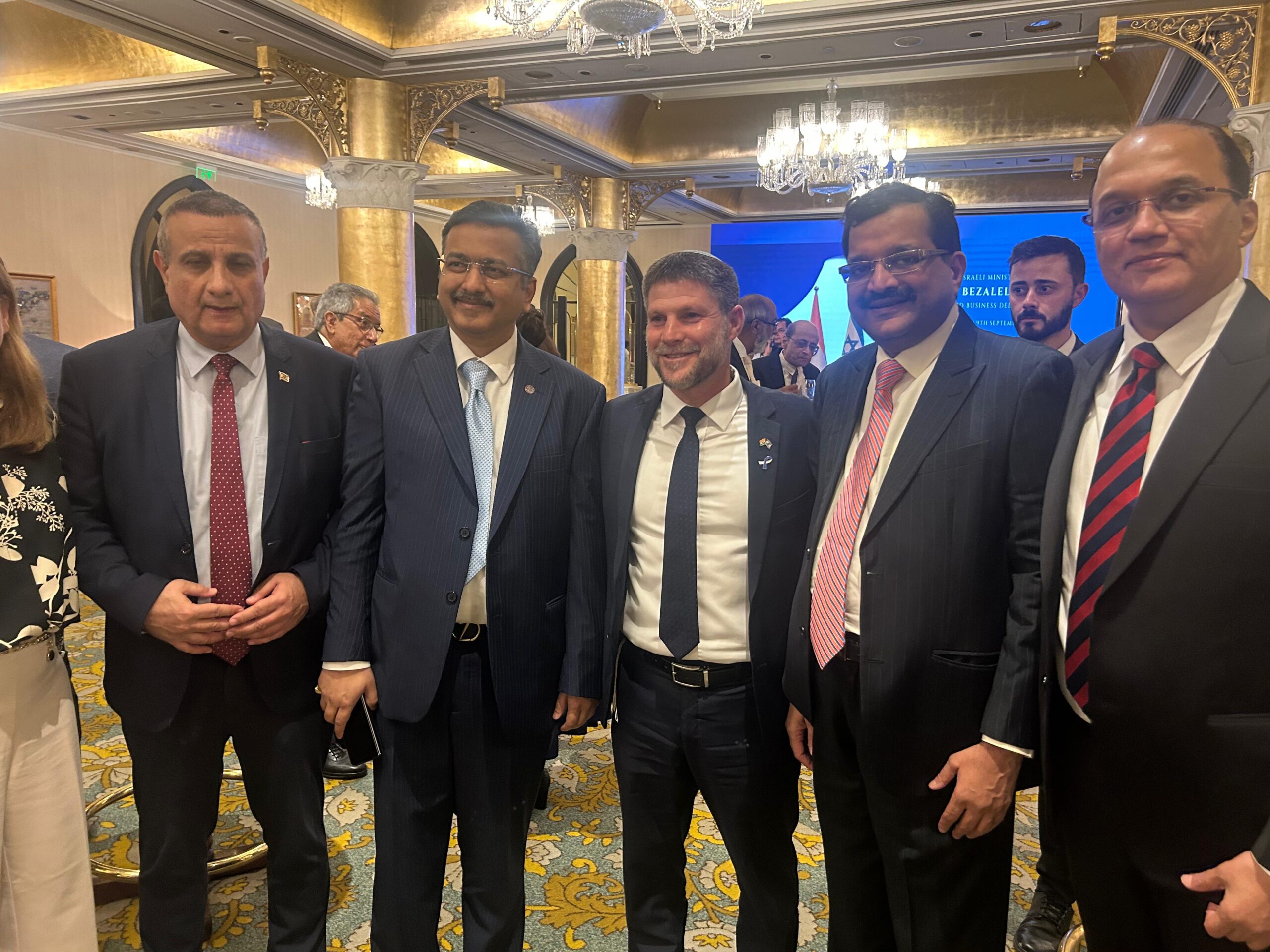 Mr. Rajiv Podar met H.E. Bezalel Smotrich, Hon. Minister of Finance in Mumbai during the Hon. Minister’s Indian visit. Consul General of Israel in Mumbai, H.E. Kobbi Shoshani, Mr. Annat Singhania, Past President IMC Chamber of Commerce and Mr. Dinesh Joshi were also part of the meeting.